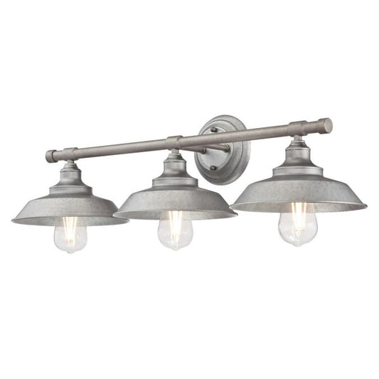 Iron Hill Three-Light Indoor Wall Fixture: Galvanized Steel Finish with Metal Shades