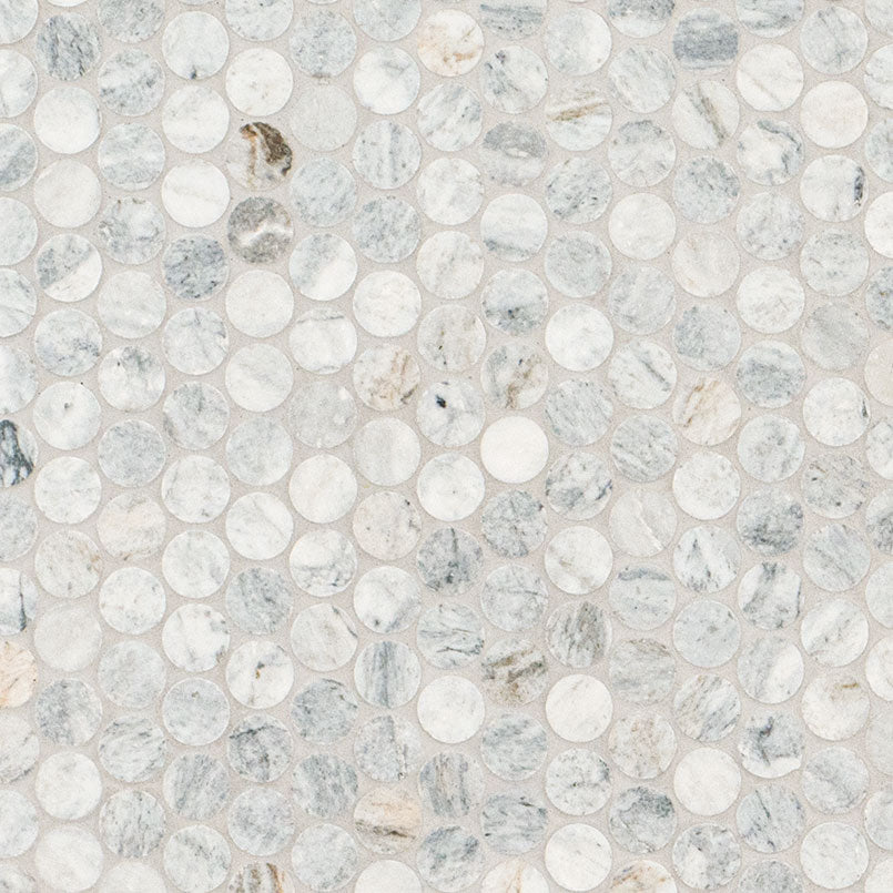 Explore the enchanting allure of Capri Blue Mosaic Tile. These mesmerizing round marble tiles showcase a stunning white and cream background adorned with vibrant blue and gold veins. With a honed finish, these charming mosaics are effortlessly enhanced by a mesh backing, facilitating easy installation. Whether you envision chic accent walls, striking backsplashes, or residential floors, these exceptional mosaic tiles epitomize elegance and sophistication. Embark on a transformative journey as these exquisite tiles grace your space with a realm of refined beauty.